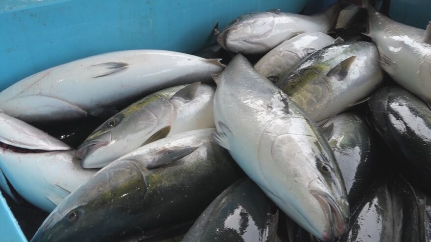 美浜町では1月7日、約1400本のブリが定置網にかかり、今シーズン一番の水揚げに港が活気づきました。