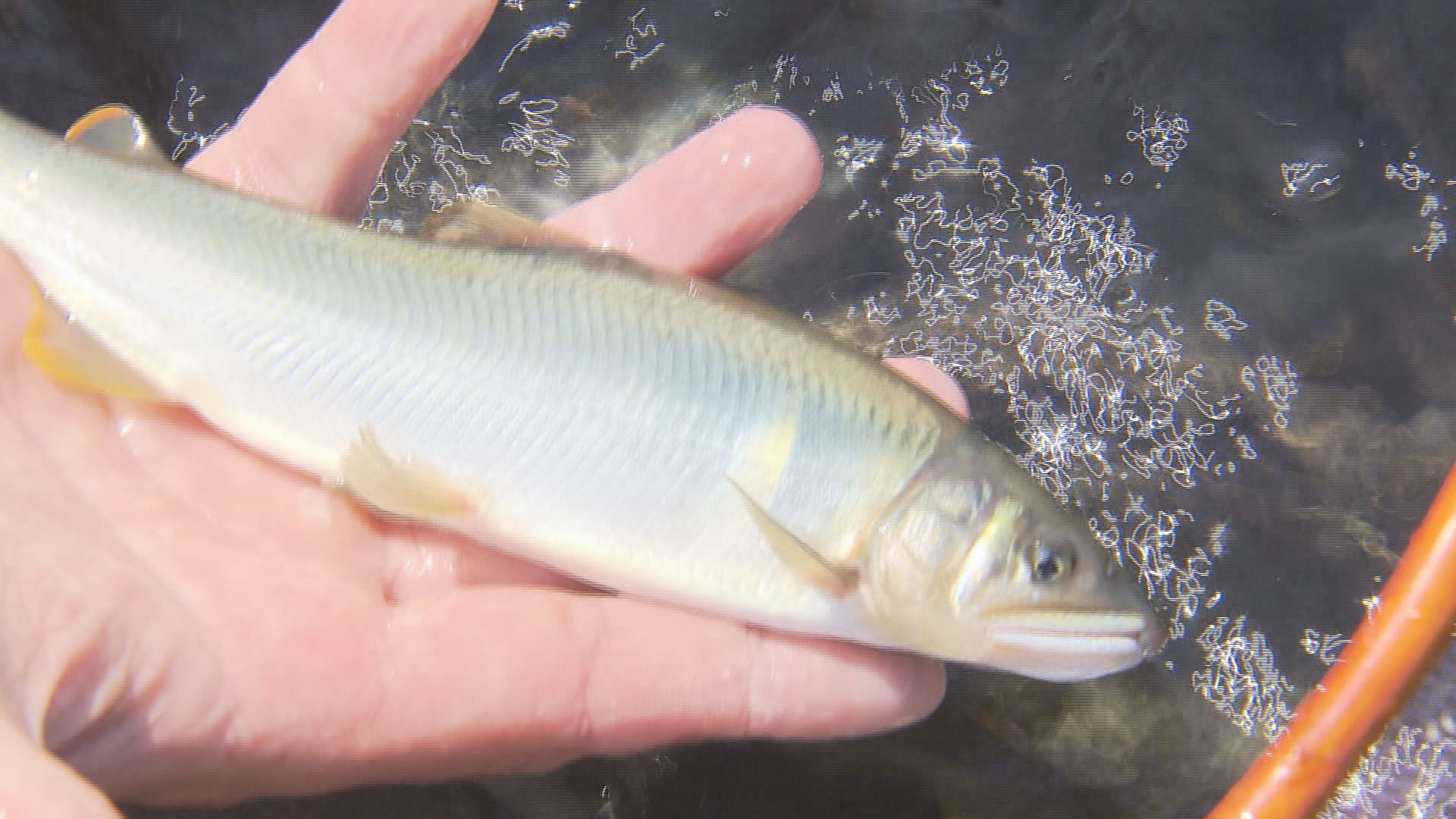 元気に泳ぐのは体長5センチほどのアユの稚魚です。