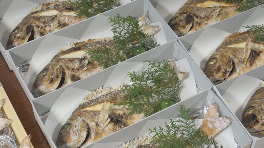 敦賀市内の旅館では新春の縁起物・鯛の姿焼きの出荷がピークを迎えています。
