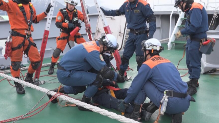海外クルーズ船の敦賀港への寄港が今年度、過去最多の9隻となりました。こうした状況から敦賀海上保安部と敦賀美方消防組合は4日、船舶事故を想定した合同での救助訓練を行い連携強化を図りました。