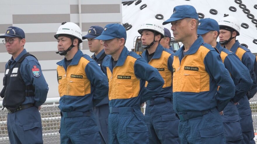 排気ガスが充満する機関室に取り残された船員を救助する訓練では、海保と消防が開設した指揮所からの指令を受け、まず現場の隊員たちが救出方法や役割分担を確認しました。そして、煙が充満する船内に酸素マスクをつけて入り、要救助者を抱きかかえながら連れ出す訓練などを実施しました。